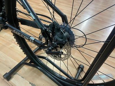 Shimano Altus 3x8 Speed with shimano Rapid fire shifters / brake lever combo, Tektro mechanical Disc brakes, SR Suntour Crankset, Wellgo metal platform pedals, SR SUNTOUR XCT Suspension forks , 27.5” QR Alloy wheels with Kenda urban/ gravel tyres fitted, lightweight alloy frame, handlebar and stem, height adjustable seat post,