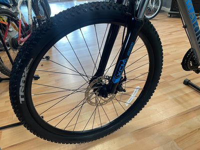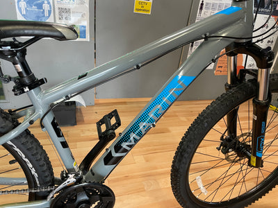 Shimano Altus 3x8 Soeed with shimano Rapid Fire shifters / brake lever combo, Shimano Crank set with chain guard, Tektro Mechanical disc brakes, 27.5” QR Alloy Wheels with Trax Mtb tyres fitted, Lighgeeight Alloy Frame, FSA Headset, Marin Alloy handlebar and stem, QR alloy height adjustable seat post with Marin Saddle,SR suntour Xcm Lockout suspension Forks, bell , reflectors .