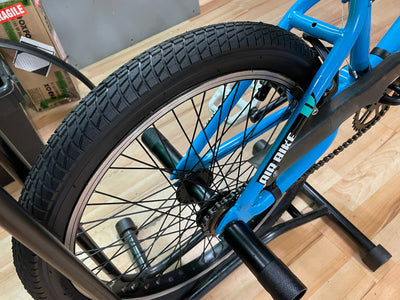 SPEC > Single speed crankset with chain guard, U Brakes Front and rear, 20” Wheels with urban tyres fitted, Stunt Pegs, plastic platform pedals